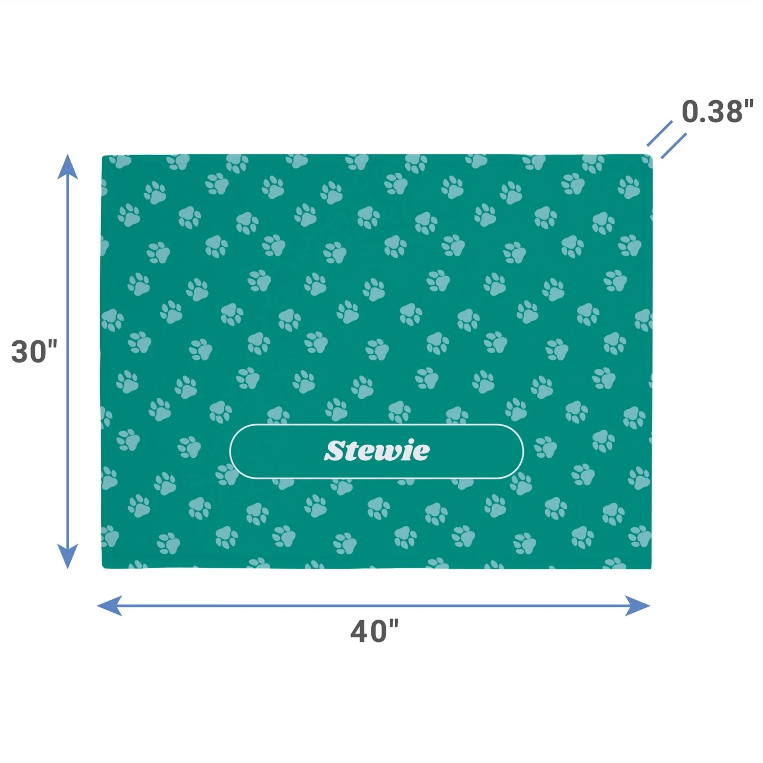 - 30×40-inch plush fleece blanket with a paw print pattern on the front and a plain white back.